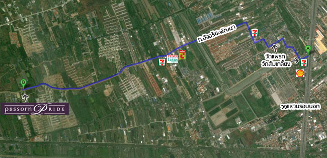 แผนที่เส้นทางการเดินทาง จากโครงการไปร้านคุณต่อไก่ย่าง