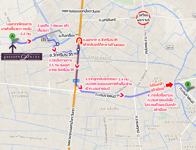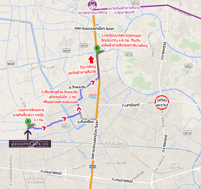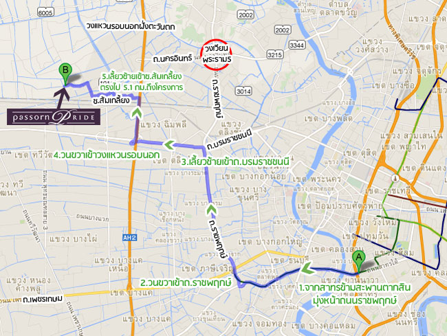 ตรงมาเรื่อยๆ ให้เข้าถนนราชพฤกษ์ (ยึดป้ายถนนราชพฤกษ์, ถนนเพชรเกษม, ถนนบรมราชชนนีไว้)