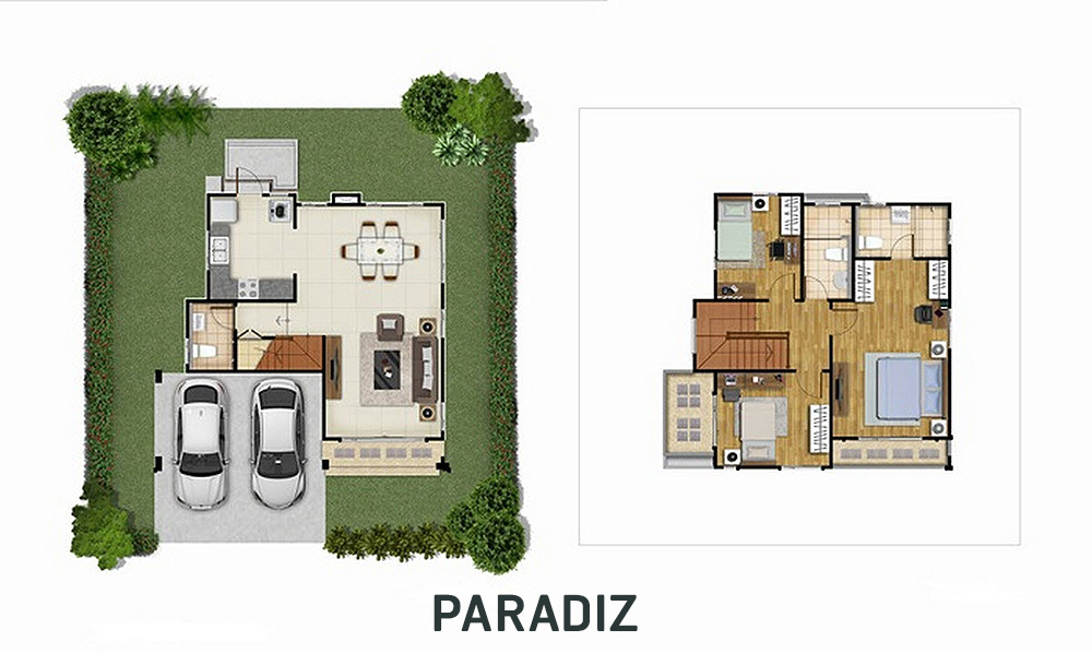 แบบบ้านแฝด 2 และ 1 ที่จอดรถ