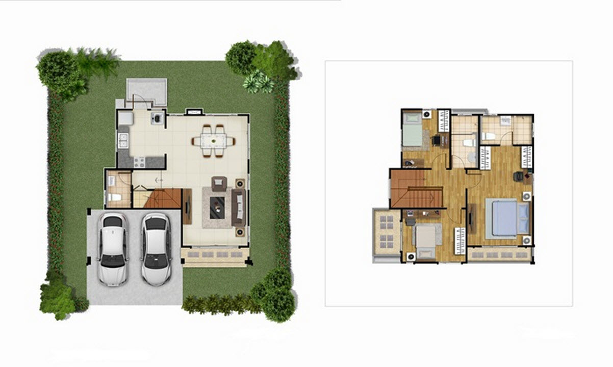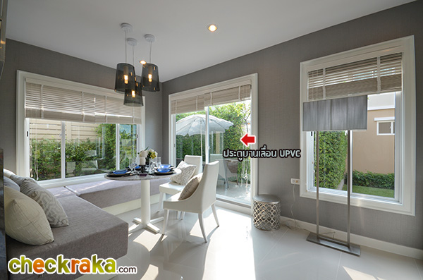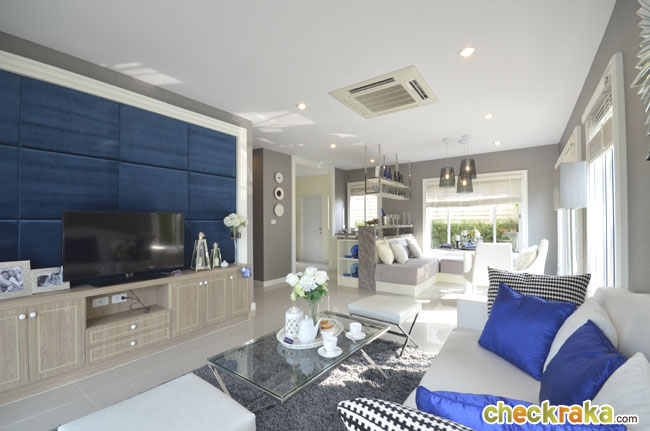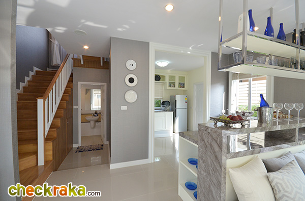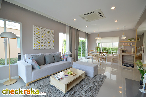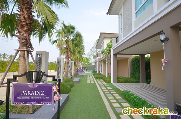 - แบบบ้านและวัสดุที่ทางโครงการเลือกใช้ โครงการมีแบบบ้านให้เลือกถึง 4 แบบ ทั้งบ้านแฝด 1 ที่จอดรถ 2 แบบ, บ้านแฝด 2 ที่จอดรถ 1 แบบ และบ้านเดี่ยว 1 แบบ ทำให้ลูกค้ามีตัวเลือกที่หลากหลาย และเลือกซื้อแบบบ้านที่เหมาะตามความต้องการ อย่างบ้านแฝด 1 ที่จอดรถ ราคาเริ่มต้น 2.99 ล้านบาท ถือเป็นทางเลือกที่ดีสำหรับครอบครัวใหม่ที่อยากได้บ้านที่มีพื้นที่รอบบ้าน และพื้นที่ใช้สอยมากกว่าทาวน์โฮมในราคาที่ใกล้เคียงกัน ส่วนครอบครัวที่ต้องการบ้านที่มีพื้นที่ใช้สอยเยอะขึ้นก็สามารถเลือกซื้อบ้านแฝด 2 ที่จอดรถ (พื้นที่ใช้สอยสูง 136 ตร.ม.) หรือถ้าชอบบ้านที่มีบริเวณรอบบ้านเยอะๆ ก็สามารถเลือกบ้านเดี่ยวได้ (ที่ดินเริ่มต้นที่ 58 ตร.ว., พื้นที่ใช้สอย 145 ตร.ม.) ถือได้ว่าโครงการนี้มีแบบบ้านที่ตอบสนองความต้องการของลูกค้าได้ครบทุกรูปแบบ ส่วนวัสดุมาตรฐานที่ทางโครงการเลือกใช้นั้น ส่วนใหญ่อยู่ในเกณฑ์มาตรฐานไปถึงดีเหมาะสมกับราคา (บ้านทุกแบบทางโครงการเลือกใช้วัสดุแบบเดียวกันหมด) อย่างเช่นกรอบประตูหน้าต่าง UPVC งานพื้นแกรนิตโต้ที่ชั้นล่าง สุขภัณฑ์ American Standard + MOGEN และไฟแบบดาวน์ไลท์