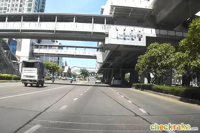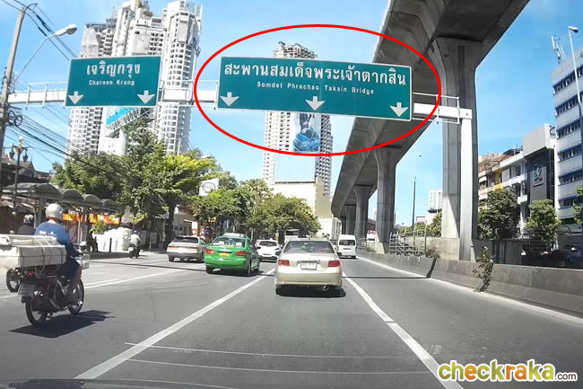 พอข้ามสะพานสมเด็จพระเจ้าตากสินมาแล้วจะเข้าถนนกรุงธนบุรีผ่าน BTS วงเวียนใหญ่