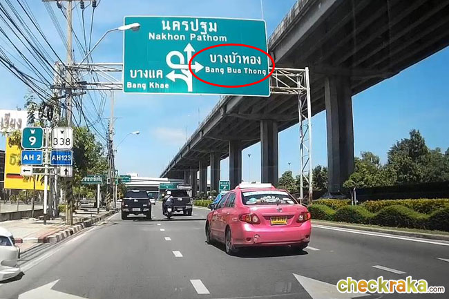 ตรงมาบนถนนบรมราชชนนีอีกประมาณ 3.9 กม. ให้เตรียมวนออกขวาเข้าวงแหวนรอบนอกตามป้ายบางบัวทอง
