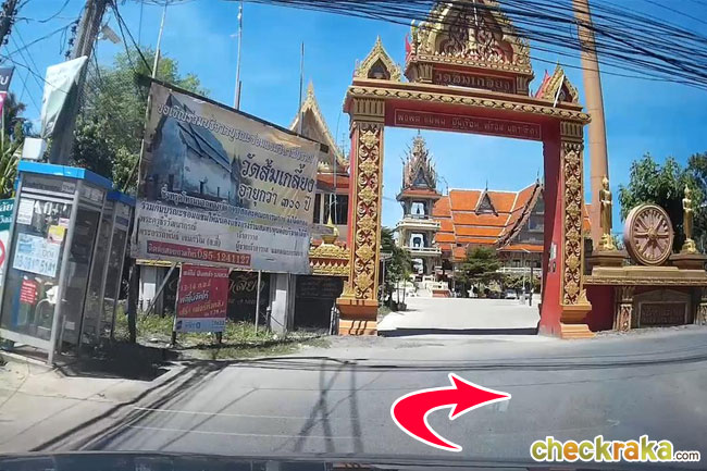 เข้าซอยมา 120 ม. ก็ถึงวัดส้มเกลี้ยงแล้วค่ะ เดี๋ยวเราโค้งขวาผ่านด้านหน้าวัดส้มเกลี้ยงไปตามทางเลย