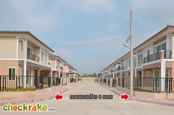 ซึ่งทางเข้าโครงการจะเว้นระยะห่างจากถนนเป็นทางลึกเข้ามาพอสมควร ช่วยทำให้ภายในโครงการดูสงบและเป็นส่วนตัว