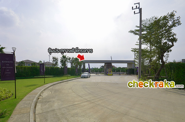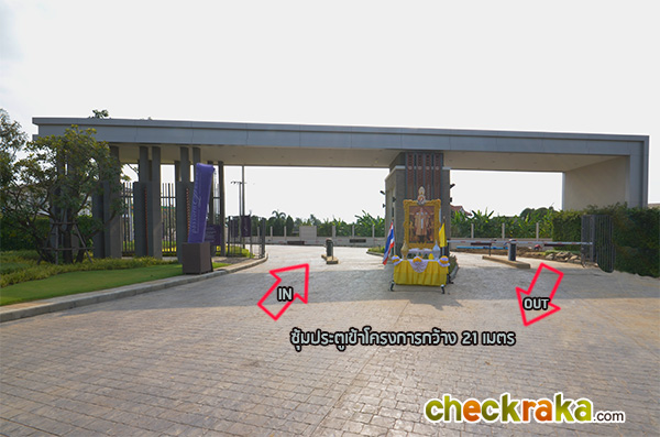ซุ้มทางเข้า-ออกโครงการออกแบบด้วยสไตล์โมเดิร์น ถนนทางเข้าช่วงนี้จะขยายกว้างออกถึง 21 เมตร