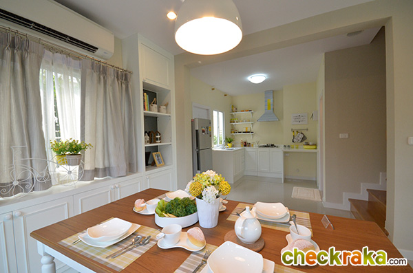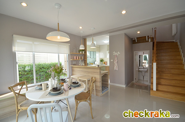 ท้ายตัวบ้านคือห้องรับประทานอาหาร ห้องครัว ห้องน้ำและโถงทางขึ้นบันไดชั้น 2