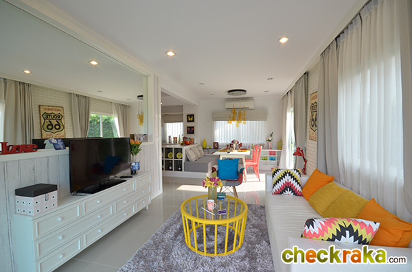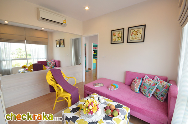 ตบท้ายด้วยภาพห้องนอนที่ 3 ที่ทางโครงการตกแต่งให้กลายเป็นห้องนั่งเล่นสีหวาน