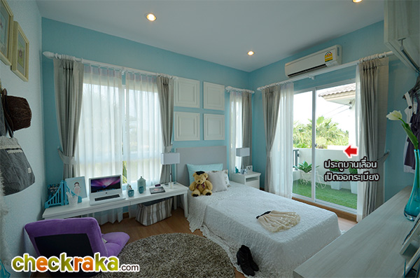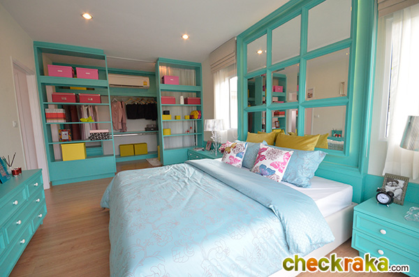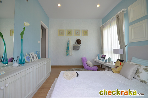 สุดท้ายกับห้องนอนที่สามที่มีขนาดรองลงมาจากห้อง Master Bedroom ตกแต่งด้วยสีฟ้าหวานน่ารัก