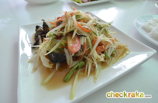 ส้มตำปูของที่ร้านนี้ดูสะอาดรสชาติไม่เค็มมาก เส้นมะละกอก็กรอบอร่อย