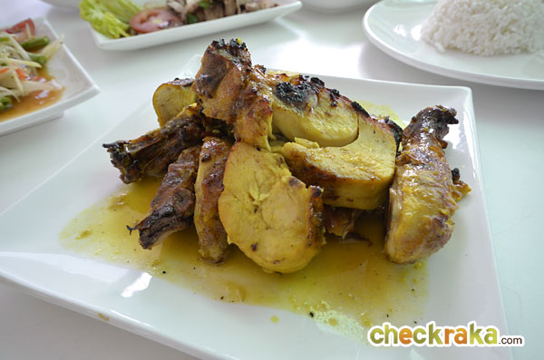แมนูแรกที่ขอแนะนำคือ ไก่ย่างเนื้อนุ่มสูตรพิเศษ รสชาติหวานมัน หอมเครื่องเทศ