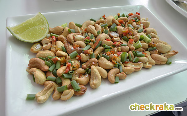 ปิดท้ายด้วย ยำเม็ดมะม่วงหิมพานต์ ถั่วคั่วใหม่ร้อนๆ บีบมะนาวคลุกเคล้ากับพริกเกลือที่โรยมาให้ อร่อยดีค่ะ