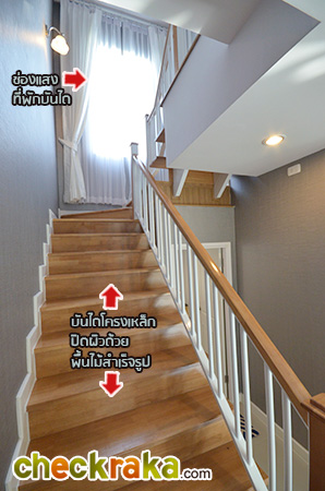 โถงบันไดทางขึ้นชั้น 2 ที่บริเวณพักบันไดมีจุดรับแสงเป็นกระจกบานใหญ่