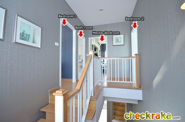 ตำแหน่งของห้องต่างๆ บนบ้านชั้น 2 งานพื้นชั้นบนทางโครงการใช้ไม้ลามิเนตค่ะ