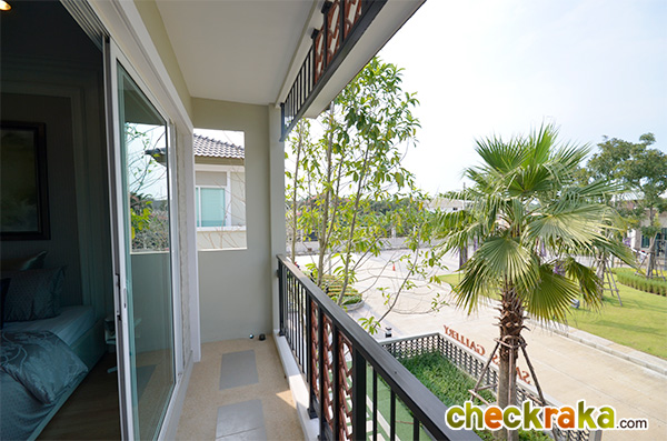 พื้นที่ระเบียงส่วนตัวจากทางด้านข้างของตัวบ้าน ดูพิเศษรองลงมาจากห้อง Master Bedroom ค่ะ