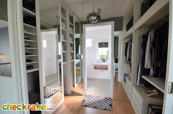 พื้นที่หน้าห้องอาบน้ำส่วนตัวที่ทางโครงการแต่งโชว์ไว้เป็น Walk-in closet ดูน่าใช้งานและลงตัวทีเดียว