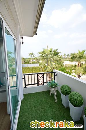 ขนาดของระเบียงส่วนตัวหน้าห้อง Master Bedroom พื้นระเบียงเป็นทรายล้างแต่งด้วยกระเบื้อง