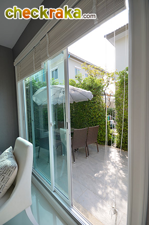 ประตูบานเลื่อนที่ใช้เปิดออกไปยังพื้นที่ด้านข้างของตัวบ้าน