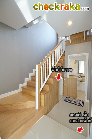 พื้นบ้าน และพื้นบันไดจะมีการเล่นระดับพื้นแยกส่วนการใช้งานไว้ให้ค่ะ