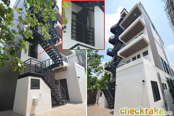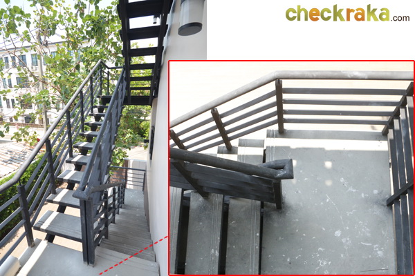 บันไดหนีไฟเป็นโครงเหล็ก แข็งแรง