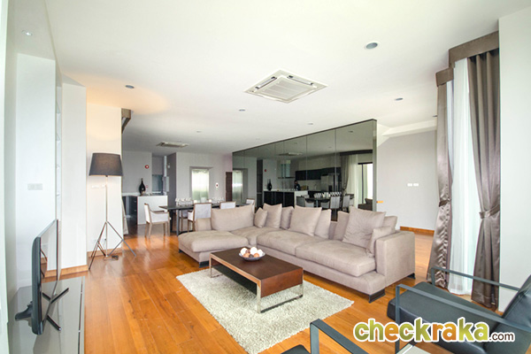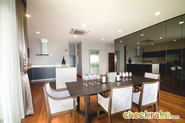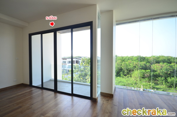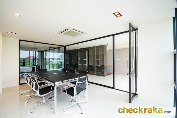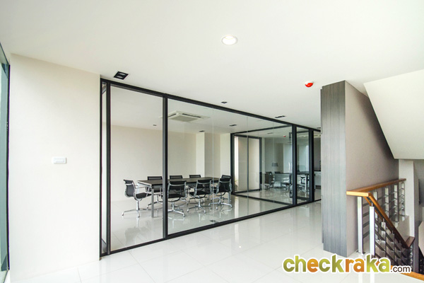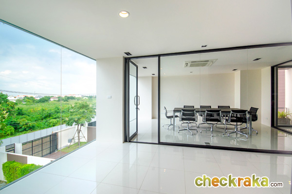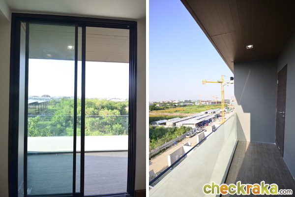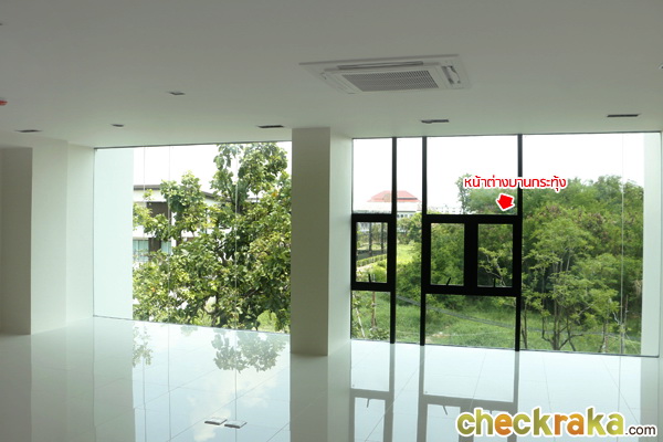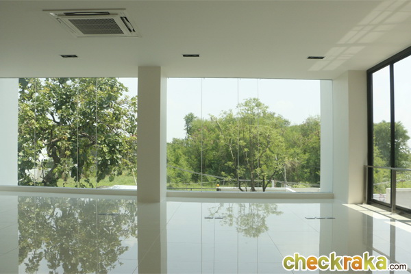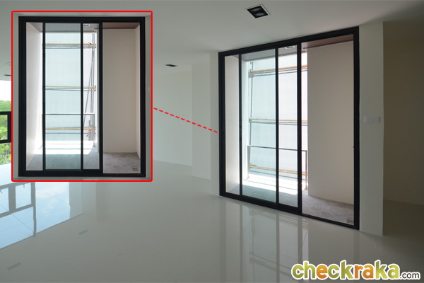 ด้านข้างเป็นกระจกบานเลื่อนสูงใหญ่ติดเพดาน เพิ่มความโปร่งสบาย