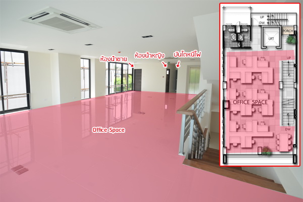 พื้นที่สำหรับ Office Area สำหรับชั้นนี้ความสูงจากฝ้าถึงเพดานอยู่ที่ 2.4 เมตรค่ะ