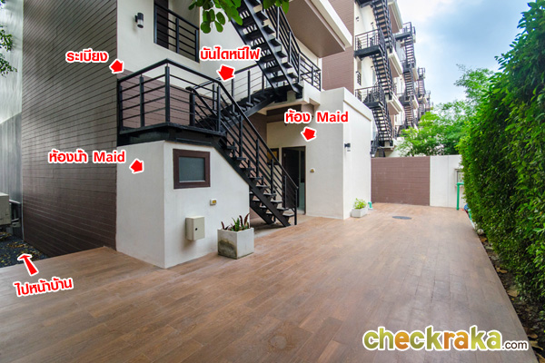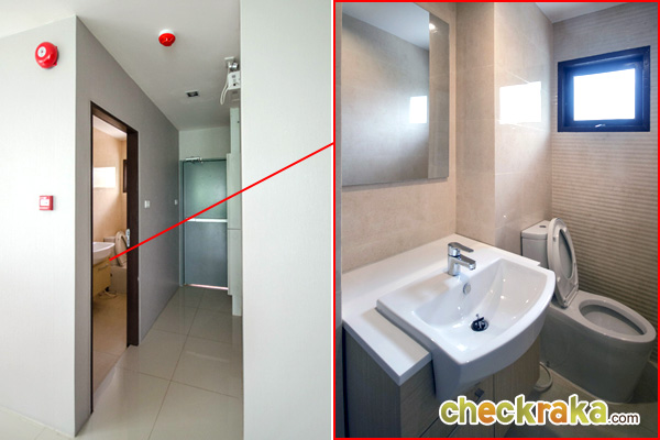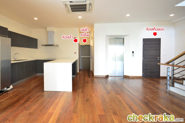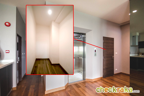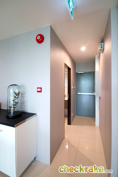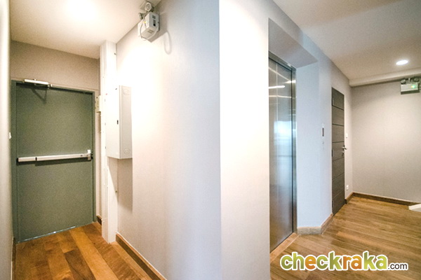ด้านหลังห้องครัวมีห้องน้ำ และประตูทางออกบันไดหนีไฟ สำหรับชั้นนี้จะมีห้องเก็บของอยู่ด้านข้างลิฟต์ให้ด้วยค่ะ