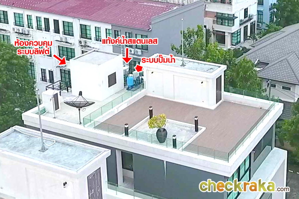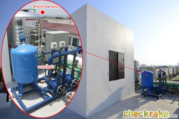 ด้านข้างมีระบบปั๊มน้ำ และถังเก็บน้ำสแตนเลส ตราเพชร ขนาด 1000 ลิตร