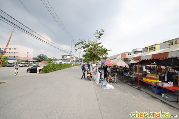บรรยากาศด้านในซอย ตรงต้นซอยฝั่งขวาจะมีตลาดนัด ฝั่งซ้ายเป็นที่จอดรถ