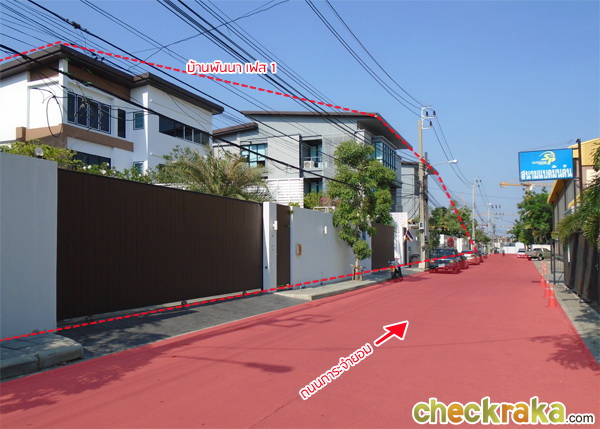 ถัดจากสำนักงานขาย จะเป็นบ้านพันนาเฟส 1 ที่มีทั้งหมด 8 ยูนิตและขายไปหมดแล้ว สำหรับถนนส่วนนี้