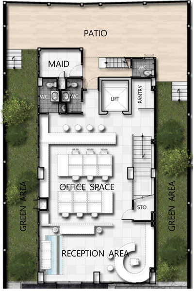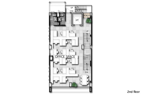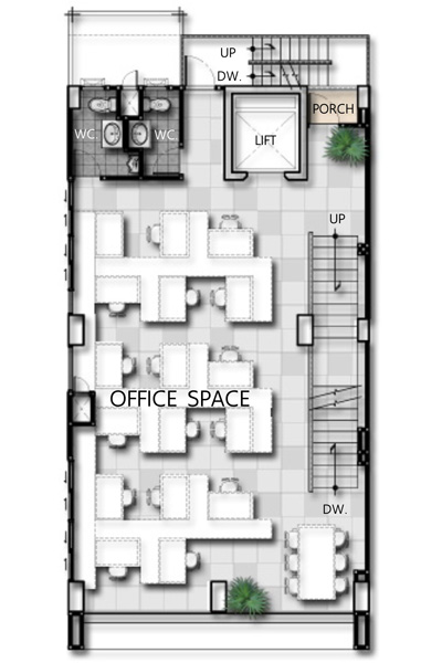 แบบบ้าน โฮมออฟฟิศ 5 ชั้น เนื้อที่เริ่มต้น 117.8 ตารางวา ราคาเริ่มต้นที่ 38 ล้านบาท