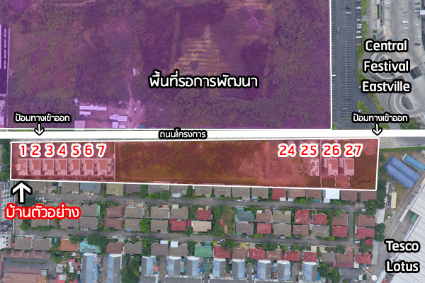 สามารถใช้ถนนภายในโครงการทะลุมายังด้านหลังของ Central Festival Eastville ได้เลยค่ะ