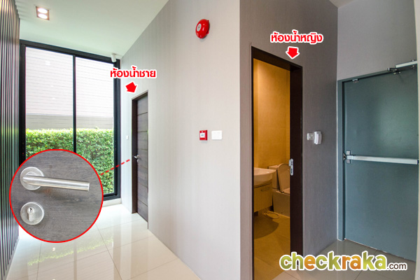 ด้านข้างเป็นห้องน้ำหญิง ประตูด้านหลังเป็นทางออกไปบันไดหนีไฟ
