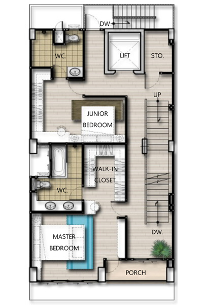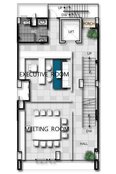 - ปัจจุบันมีแบบบ้านทั้งหมด 1 แบบ แบบโฮมออฟฟิศ สูง 5 ชั้น