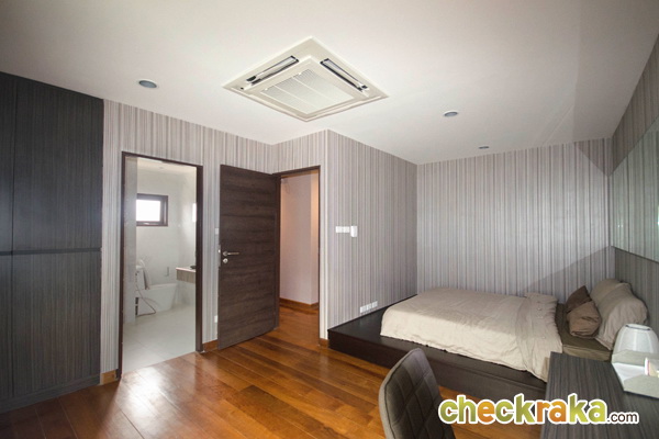 บรรยากาศ Master Bedroom มองจากระเบียงใหญ่ ชั้นนี้ความสูงจากพื้นถึงฝ้าอยู่ที่ 2.40 เมตร