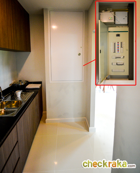 ทางโครงการจัดวางส่วนของห้องนี้ได้ดีทีเดียวค่ะ เพราะประตูที่เห็นนั้นคือ ประตูห้องน้ำ