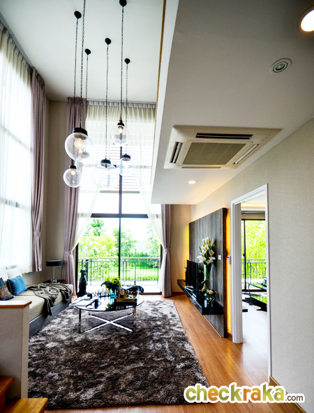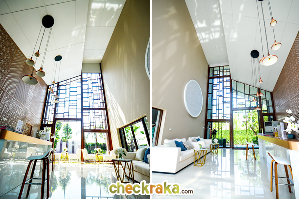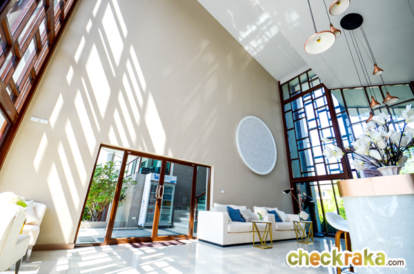 ตัว Lobby มีความสูงโปร่ง ประตูที่เห็น สามารถเปิดออกไปสระว่ายน้ำและส่วนอื่นๆ ของคลับเฮ้าส์ได้