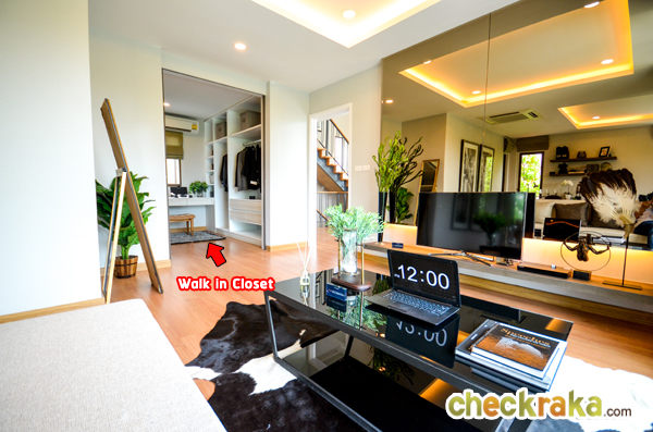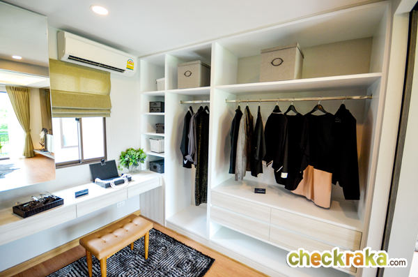 ภายใน Walk-in Closet มีขนาดกว้างสามารถดีไซน์ตู้เสื้อผ้าและโต๊ะเครื่องแป้งได้ตามใจชอบ ภายในห้อง