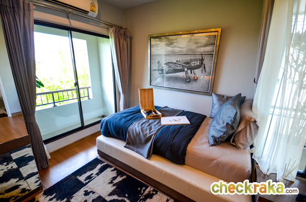 ภายในห้องวางเตียงขนาด 3.5 ฟุต วางตู้เสื้อผ้าตรงมุมซ้าย และจัดเป็นโต๊ะอ่านหนังสือถัดจากกัน
