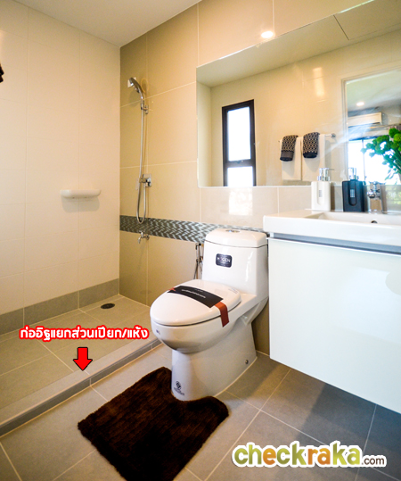 ฟังก์ชั่นของห้องน้ำห้องนี้ มีสามฟังก์ชั่นปกติ มีระยะการใช้งานตามมาตรฐานคือ วางเรียงไปเลย มีอ่างล้างหน้า กระจก