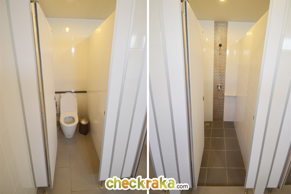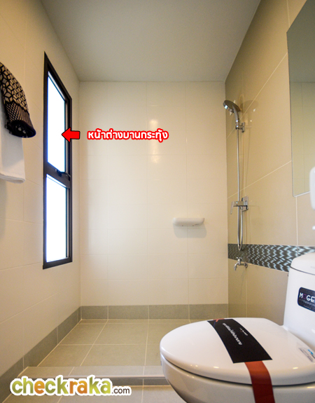 โถสุขภัณฑ์ และส่วนอาบน้ำ ภายในห้องมีหน้าต่างบานกระทุ้งด้วยค่ะ