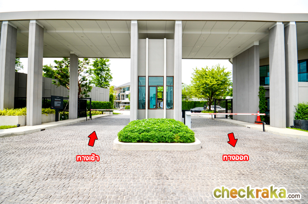 ซุ้มประตูทางเข้า-ออก ดีไซน์สวยงาม มีห้องสำหรับ รปภ.อยู่ตรงกลาง เวลาจอดรถตรงจุดนี้