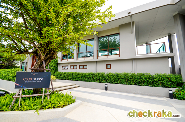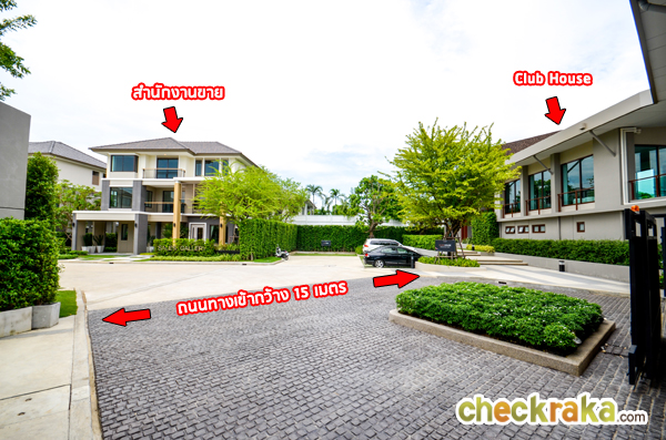 เข้าซุ้มประตูโครงการ จะเจอคลับเฮ้าส์ตั้งเด่นอยู่ที่ด้านหน้าฝั่งขวามือเลยค่ะ