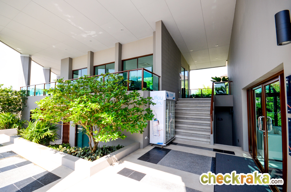 ตัวคลับเฮ้าส์สร้างสไตล์โมเดิร์น ทั้งกระจกขนาดใหญ่ทรงสูง ประตูทางเข้า