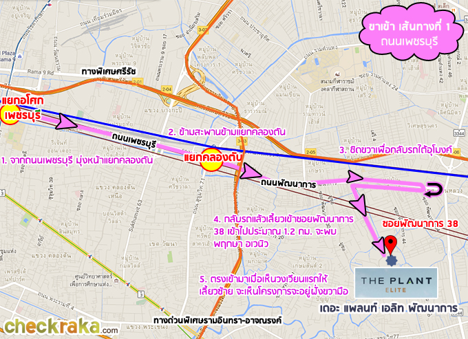 แผนที่แสดงเส้นทาง ขาเข้าจากถนนพัฒนาการ