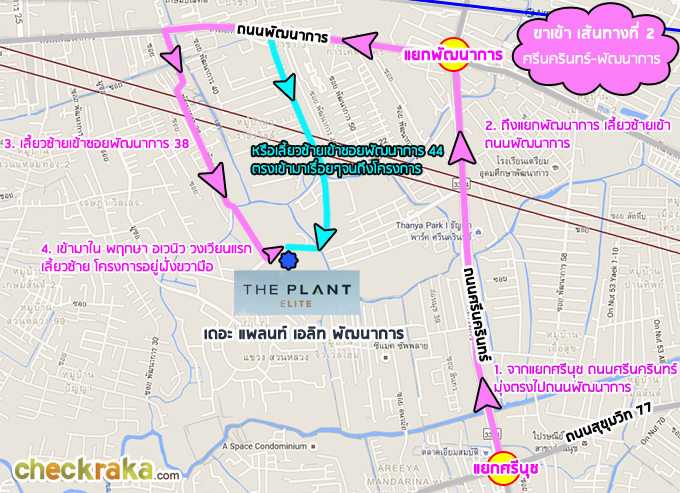 ขาเข้าโครงการ เส้นทางที่ 2 มาจากแยกศรีนุชถนนศรีนครินทร์ เพื่อเข้าสู่ถนนพัฒนาการ