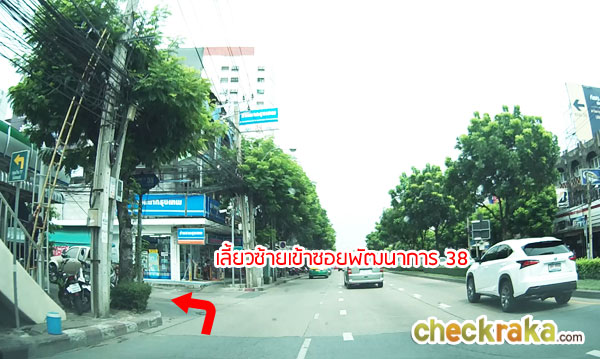 เลี้ยวซ้ายเข้าซอยพัฒนาการ 38 (ทางขึ้น-ลงสะพานลอยอยู่หน้าปากซอยพอดี)