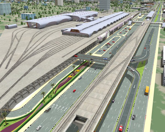 ภาพจำลองอาคารจอดแล้วจร และศูนย์ซ่อมบำรุงที่สถานี คลองบางไผ่