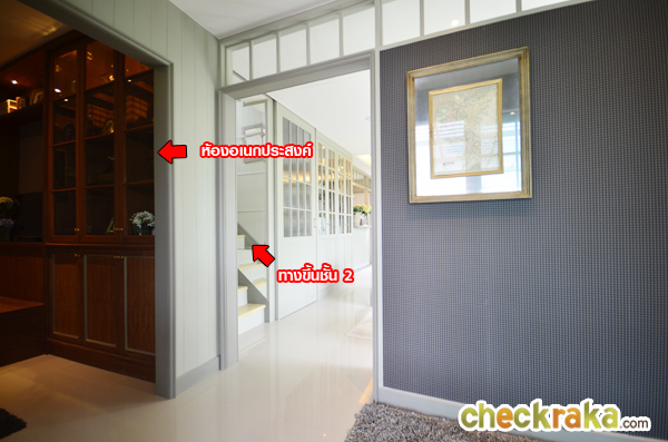 จากรูปนี้จะเห็นทางเข้าห้องอเนกประสงค์ที่อยู่ด้านหน้าสุด และทางเข้าไปในตัวบ้าน