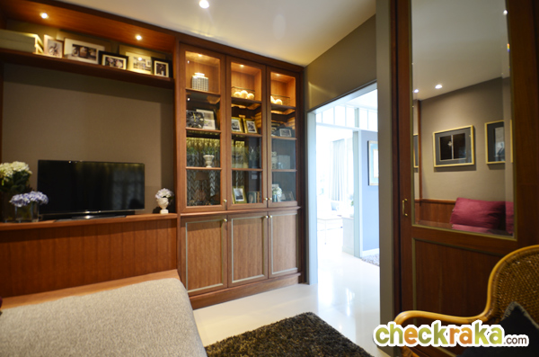 ก่อนจะขึ้นชั้น 2 มาดูส่วนห้องเก็บของใต้บันไดกันค่ะ มุมนี้ทางโครงการทำตู้เก็บของขึ้นมา และ Built in บานเลื่อนมาปิดไว้