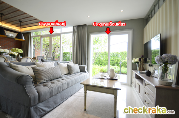 ประตูบานเลื่อนคู่เปิดเข้า-ออกได้ กว้างขวางทีเดียว